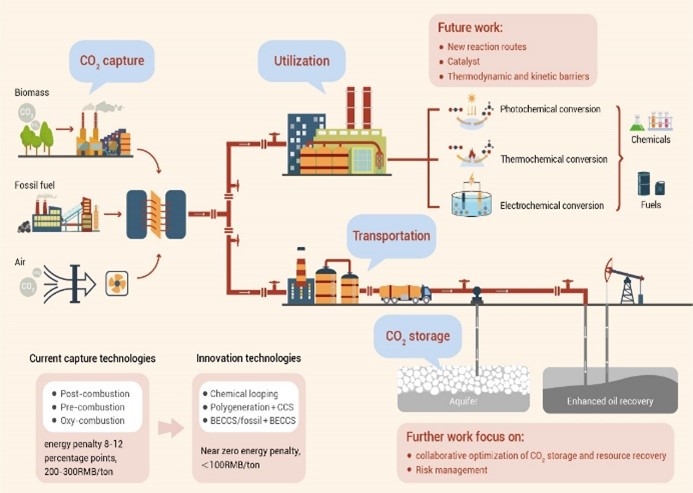 探索了燃料转化过程热力学不可逆损失与碳组分富集的协调机理;提出了燃料源头低能耗碳捕集新方法,并进行了中试示范;首次给出了电厂碳捕集能耗的热力学极限,预测电厂碳捕集成本的下降空间;构建了可再生-化石能源品位互补方法,实现了能的更好品位匹配与梯级利用,及化石能源零碳、负碳排放。