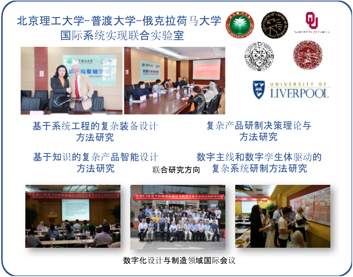 在科研合作与人才培养的国际化方面,工业与智能系统工程研究所建立了两个校级国际合作实验室,与美国普渡大学、俄克拉荷马大学建立了“国际系统实现联合实验室”;与慕尼黑工业大学建立了“驾驶行为与交通安全联合实验室”。2019年获批北京市人车协同与智能决策国际联合实验室。依托上述科研项目及条件平台,与美国、德国等著名高校形成了稳定的联合培养双学位博士、交换研究生、短期学术交流等国际合作机制。