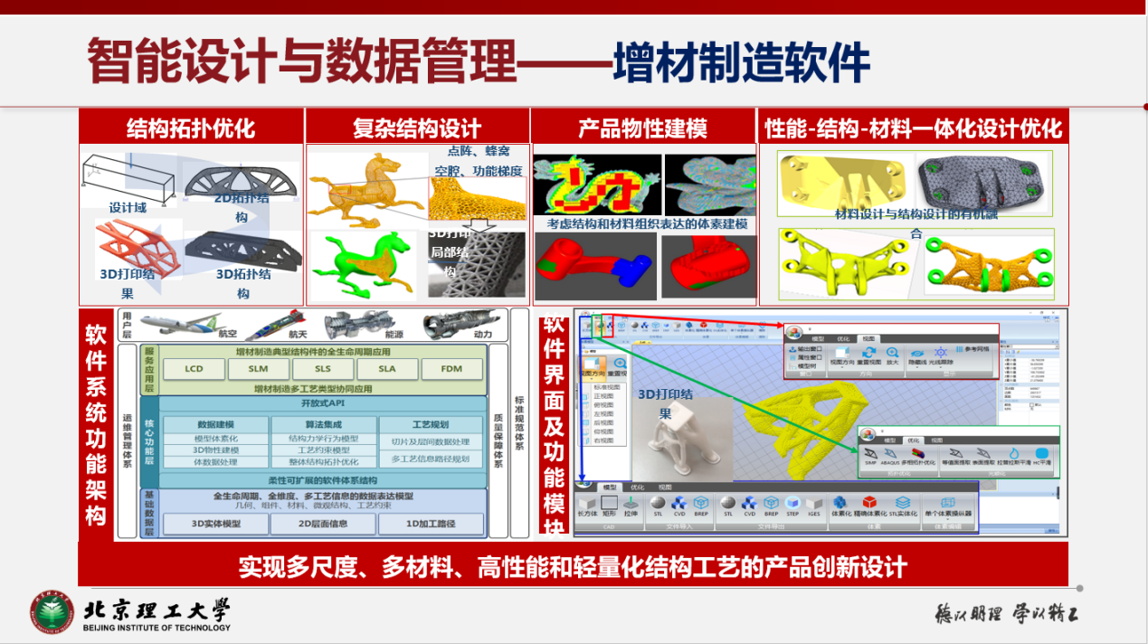 建立了大规模工程知识与数据管理模型,形成了工程知识驱动的智能设计技术体系,涵盖基于系统工程的复杂装备研发模式、多模态信号驱动的智能交互、小数据下高精度实时产品性能预测、知识图谱驱动的工程知识问答以及数字双胞胎驱动的智能设计方法;研究了基于复杂网络的大数据建模方法,以及复杂技术网络驱动的装备创新设计技术;开发了面向多色、多材料、多尺度工艺结构的3D打印建模方法,实现了产品的外观、宏微观结构以及材料布局的一体化设计与建模。