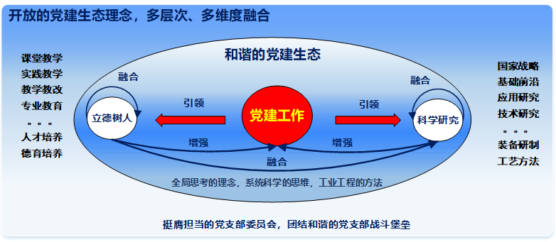 工业与智能系统工程研究所教师党支部现有党员17人,其中党支委5人。党支部坚持以党的政治建设为统领,围绕立德树人根本任务,构建了“一引领二增强三融合”的“三位一体”党建工作机制。“一引领”:传承“延安根、军工魂”的优良传统,坚持党建工作红色基因驱动守正创新,引领支部各项工作高质量发展;“二增强”:教书育人和科研服务国家战略两大业务高质量发展,增强支部党建工作的内容和方法;“三融合”:党建工作、立德树人和科研服务国家战略三者通过思维方式、工具方法、内容和形式多维度、多层次有机融合,构建了和谐共融、共同发展的党建生态。2021年支部获得校先进党组织称号,2023年支部教师获得北京市优秀共产党员称号。
