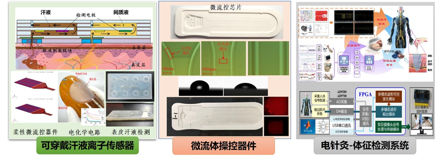 开展了可穿戴体征检测微系统设计/制造/集成技术研究。研究了人体表皮汗液离子、血清抗体、和物理体征(心率、血压)综合分析的传感器及其智能控制集成系统,用于人体生理指征实时检测、疾病诊断和电针灸主动治疗等应用。