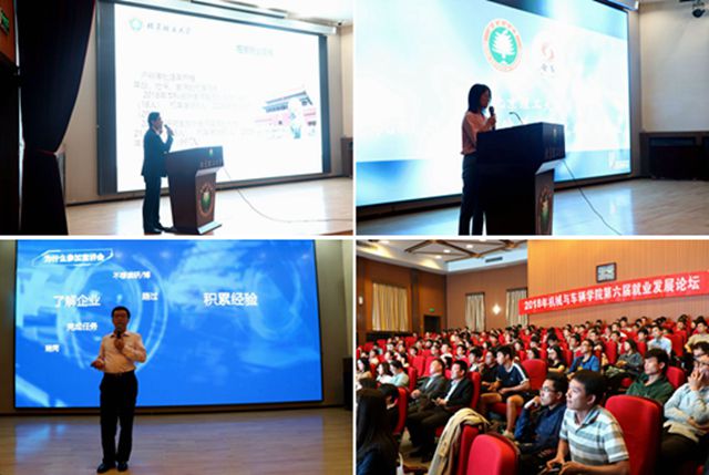 主论坛【平台•对话•分享•成长】之“大众创业,万众创新”背景下应届毕业生就业形势分析、制造业及汽车行业前景分析与汽车行业人才职业发展分享,学院邀请到校、院各级领导、用人单位代表出席活动,面向全校同学开放。主论坛由三部分组成,首先由学生就业指导中心林骥佳主任进行“2019届毕业生就业形势分析与政策解读”主题报告,从自己的就业故事讲起,结合最新出炉的2018届就业数据,对行业用人需求等新形势进行了深入的讲解。随后,学院生涯发展服务中心周雪老师代表学院汇报“2018年Beat365官方网站就业工作报告”,介绍了在就业工作指导思想引领下的工作开展情况和特色创新:学院生涯发展服务中心工作的创新和机制变革,“企业大讲堂”、“笑迎职场”、暑期企业实习项目等特色品牌开展情况。最后,本次论坛活动特别邀请北汽福田汽车股份有限公司人力资源部总监潘平进行了“大众创业,万众创新”背景下制造及汽车行业前景分析与汽车行业人才生涯发展分享。潘平介绍了汽车行业的总体发展与形势、单位用人标准以及应届毕业生在求职面试、职业发展过程中需要考虑清楚、处理得当的问题。