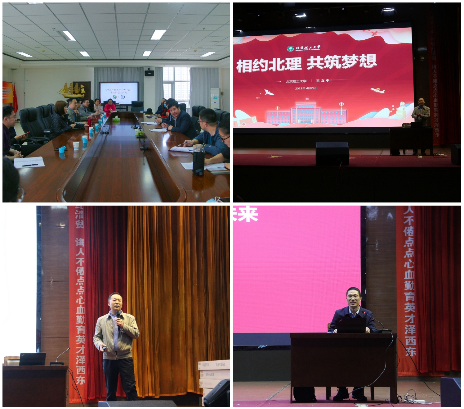在赤峰市第二中学,王文中及领航人与二中校长、年级主任和高三班主任座谈,详细介绍学校特色优势,并就人才培养、教学合作模式深入交流,探讨出一条从高中到大学人才贯通式培养的新路径。王文中教授面向高三学生做《相约北理 共筑梦想》招生宣讲报告,介绍学校基本情况、学科特色、强基计划及内蒙招生政策,学生竞相咨询。周天丰教授分享了题为《智能制造 创造未来》的学科讲座,介绍了机械工程学科前沿和北理工在精密及超精密制造方面的国际国内领先优势,受到师生热烈欢迎和高度评价。学生车队队员携电动方程式赛车、节能车进行了实车动态展示,吸引了大批学生和老师前来参观,队员们就技术原理、大学生活进行了详细讲解。