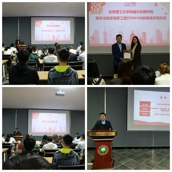 为贯彻落实团中央《关于深入实施青年马克思主义者培养工程的意见》,进一步提升学生干部思想水平和政治素养,4月21日晚,Beat365官方网站“青年马克思主义者培养工程STAR100研修班”开班仪式在车辆实验楼报告厅隆重举行。本次开班仪式由学院团委书记、学工办主任郝佳馨主持,出席开班仪式的有校团委书记刘渊,学院党委副书记、副院长孙硕,学院创新创业教育中心主任赵方,研究生辅导员刘洋,青马学员及团支书代表。