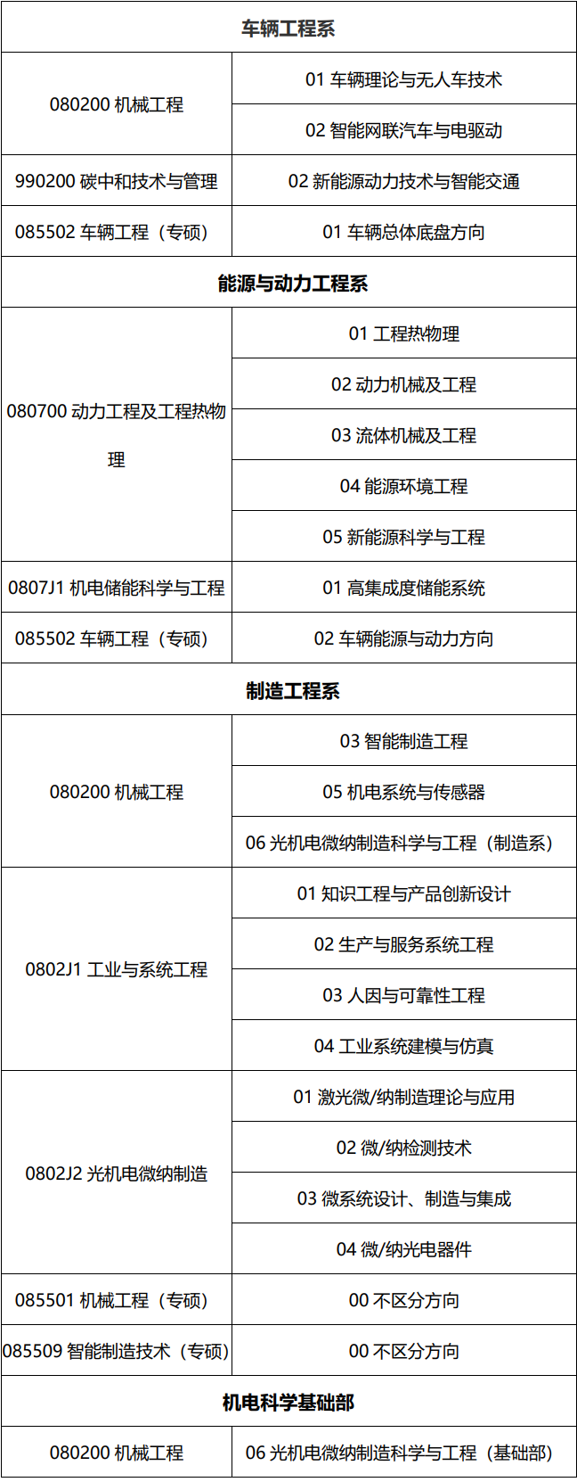 学院各系录取专业和方向