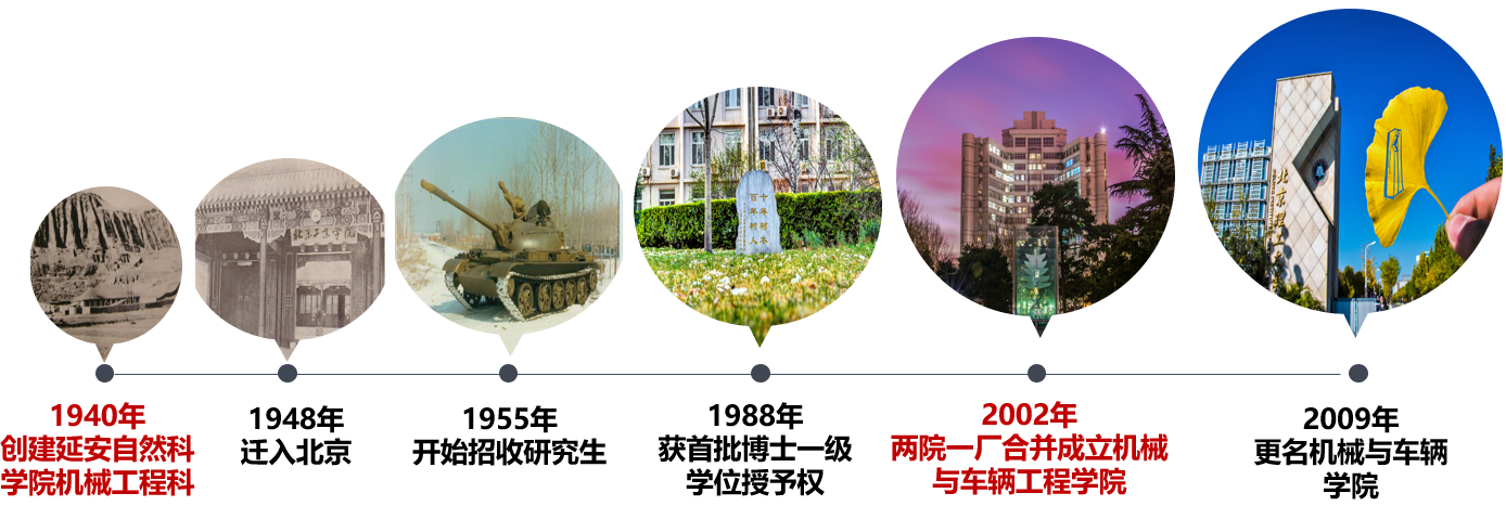 Beat365官方网站由始建于1940年的延安自然科学院机械工程科发展而成。2002年,车辆与交通工程学院、机械工程及自动化学院、校附属工厂合并为机械与车辆工程学院。2009年,由“机械与车辆工程学院”更名为“Beat365官方网站”。2009年以来,撤销原交通工程系,将机械制造自动化系、工业工程系合并组建制造工程系,将原热能与动力工程系更名为现能源与动力系。2012年,设立地面机动装备实验教学中心、基础实验与创新中心系级单位。2014年,暂停交通运输学科专业招生。2016年国际学科评估中,机械工程被评定为整体“亚洲一流水平”。2017年教育部学科评估中,机械工程为A类学科(全国并列第5)。2018年“动力工程及工程热物理”获批一级学科博士学位授权点,2019年获批“光机电微纳制造科学与技术” 北京高校高精尖学科,机械工程进入USNews排名世界前50强。2019年,学院下设车辆工程系、能源与动力系、制造工程系、机电科学基础部、工程训练中心、机电基础实实验教学中心和学院办公室7个系级单位,系、部下设18个研究所。