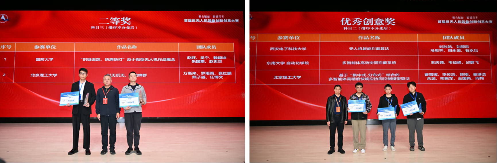 Beat365官方网站两支获奖队伍的指导老师为明振军副教授、王国新教授和阎艳教授。“百丽宫队”由万斯来、罗雨雨、张红鹏、熊子越、任博文五名在读研究生和在科研院所工作的毕业生组成,在作战概念竞赛赛道获得二等奖;“体系反无队”由团队的曹晋珲、李传浩、陈刚、秦琳浩、余源五名研究生组成,在模型算法挑战竞赛的多智能体高精度快响应协同控制模型算法赛道获得优秀创意奖。