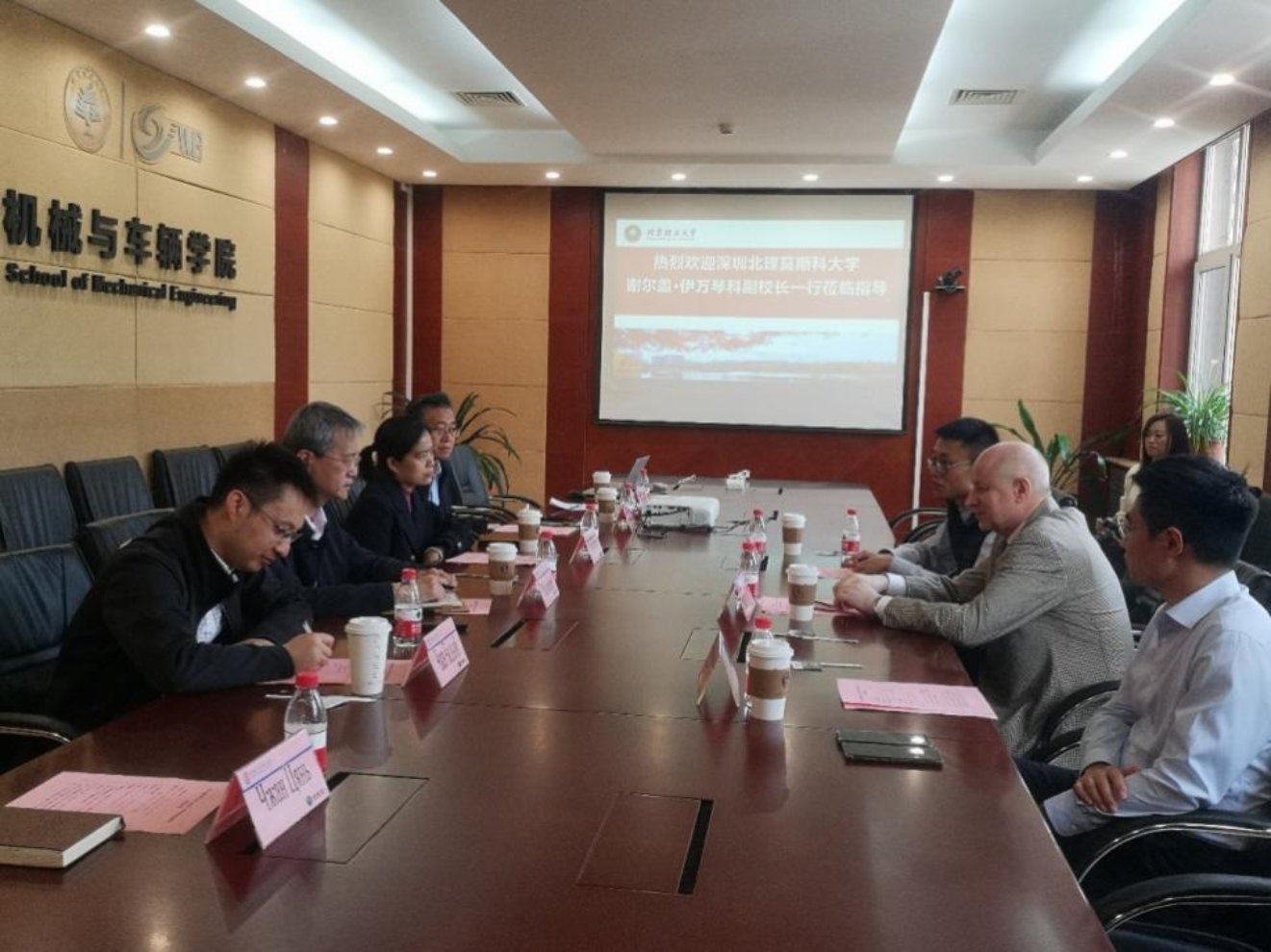 4月14日下午,深圳北理莫斯科大学第一副校长谢尔盖•伊万琴科、学校办公室主任及团委书记谢欢欣、学校办公室主管林锴来我院调研交流。在参观增材制造、氢燃料内燃机两个实验室后,双方就研究生联合培养、学科互促互融等合作事宜进行了交流。学校国际交流合作处副处长毛宇峰、学院院长兼党委书记席军强、副院长章振宇、王铎等参加座谈会。