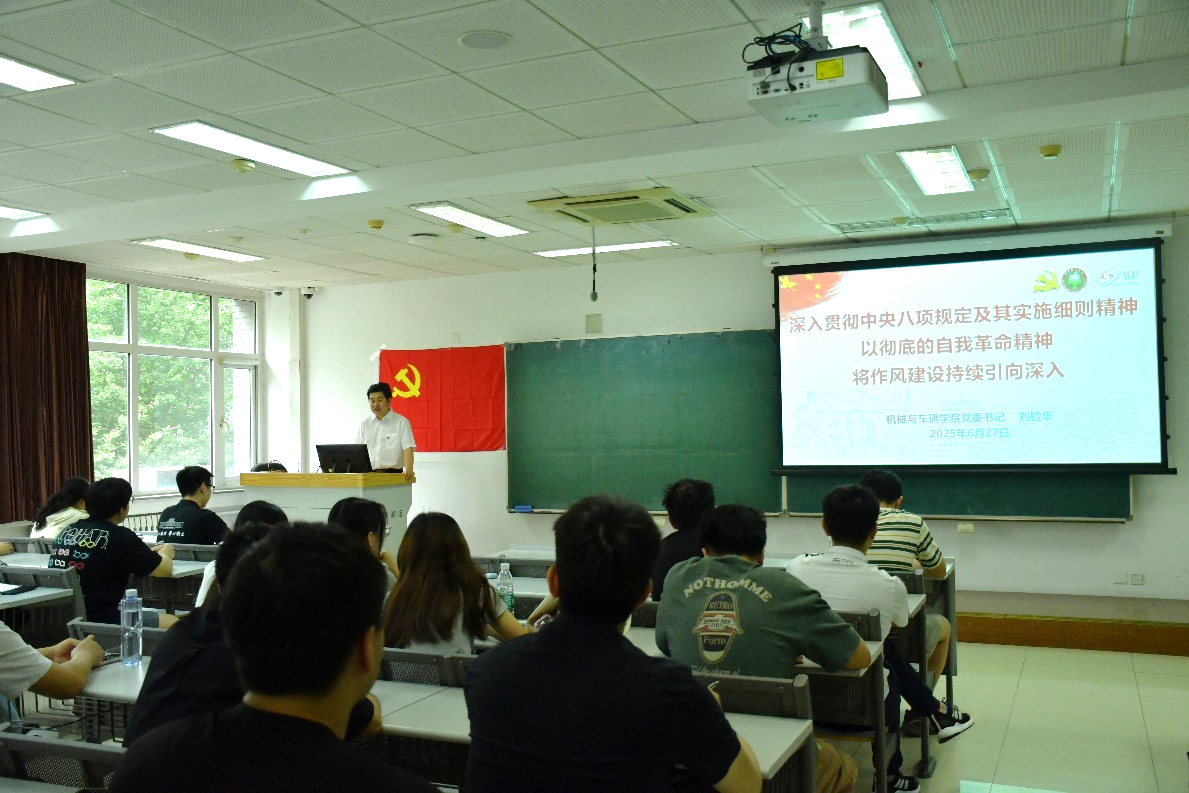 党课紧密围绕深入贯彻中央八项规定精神学习教育要求,结合学院工作实际,系统梳理了中央八项规定从“开局破题、制度完善、常抓不懈”到“持续深化”的推进路径,着重解读了中央八项规定实施以来在改进作风、密切党群关系、推动高质量发展中的显著成效。刘检华勉励在场青年学子,要自觉将思想和行动统一到党中央决策部署和学校党委工作安排上来,扎实开展学习教育,从严纠治不正之风,持续涵养风清气正的政治生态,以优良作风为学校全面深化改革、加快推进中国特色世界一流大学建设提供坚强保障。