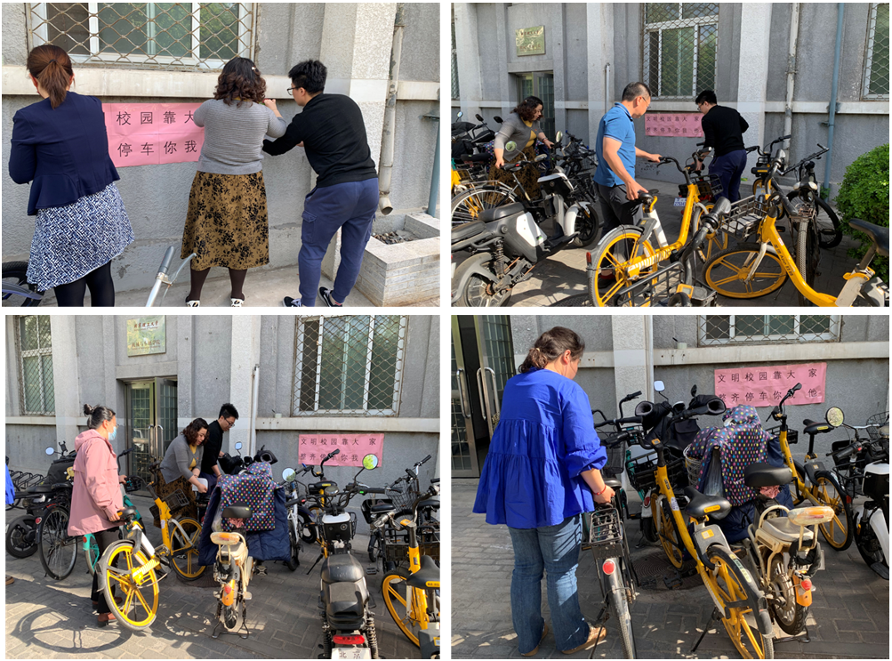 会后,为进一步发扬志愿服务奉献精神,营造和谐、整洁、美丽校园环境,双方支部教工党员开展了“创文明校园,志愿者在行动”摆放校园自行车服务活动,为打造和谐、有序、文明、美丽的校园环境奠定了良好的基础,也激发了党员们的“爱校、荣校、强校”教育,增强了党员们的凝聚力和向心力。