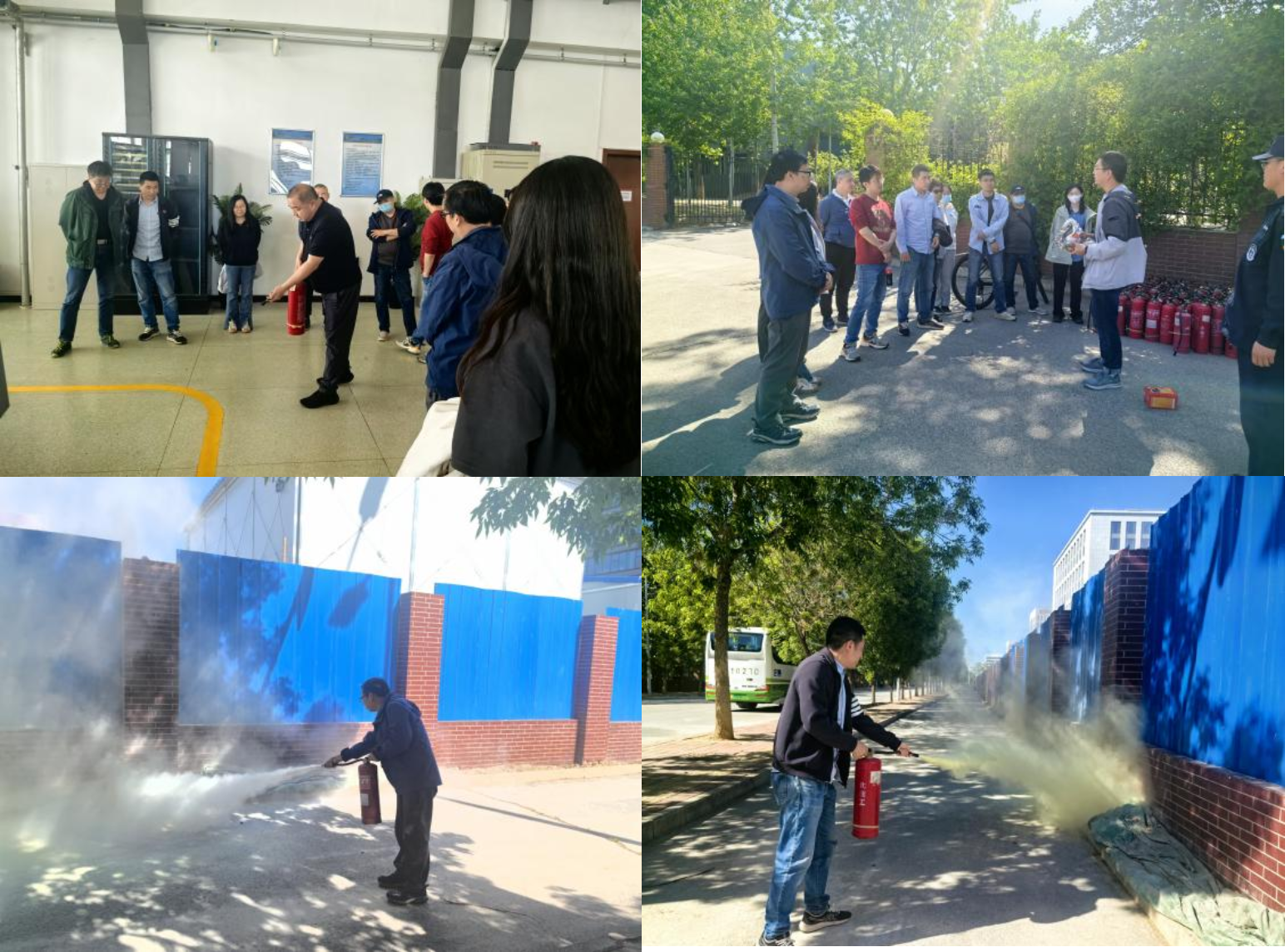 理论培训结束后,全体人员在工训楼配115实训区开展“火灾应急疏散与灭火演练”。罗黎明现场演示干粉灭火器四步操作法,模拟实训区突发小型火情场景,按照应急预案分工,参训教师分组进行疏散引导、报警响应及灭火器演练。随后,联合保卫处在两校区封闭道路消防演练区组织“消防器材使用专项培训”。参训教师学习防烟面罩佩戴、灭火器的使用等技能,强化复杂火情下的协同救援能力。
