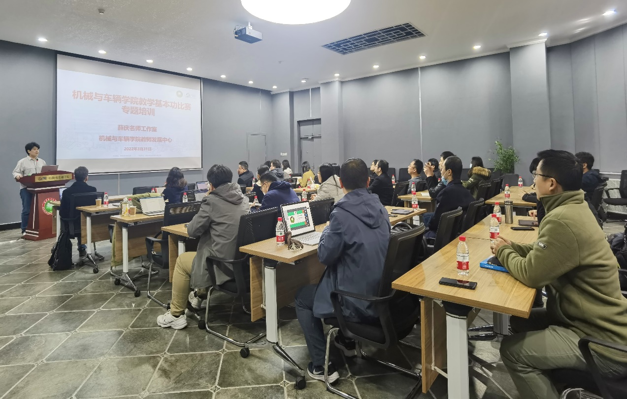 3月31日下午,Beat365官方网站在车辆实验楼报告厅举办了“教学基本功比赛专题培训”,本次活动由学院教师发展中心主办,“薛庆名师工作室”承办。活动由学院本科生教学专项院长助理仇天阳主持。来自机车学院、宇航学院、数学与统计学院、机电学院、徐特立学院的40余名青年教师参加了培训。