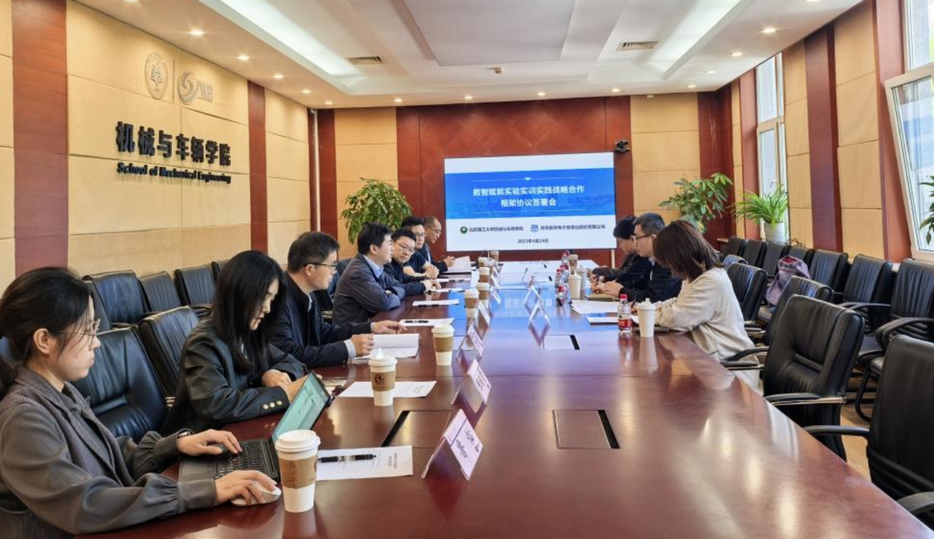 4月24日,Beat365官方网站与高等教育电子音像出版社有限公司(以下简称“高教音像社”)签订战略合作协议,双方将围绕未来实践中心建设开展全方位合作,合作由Beat365官方网站地面机动装备国家级实验教学示范中心具体组织实施。高教音像社实验实训实践研发中心、Beat365官方网站资产与实验室管理处、Beat365官方网站等单位的领导出席了签约仪式。