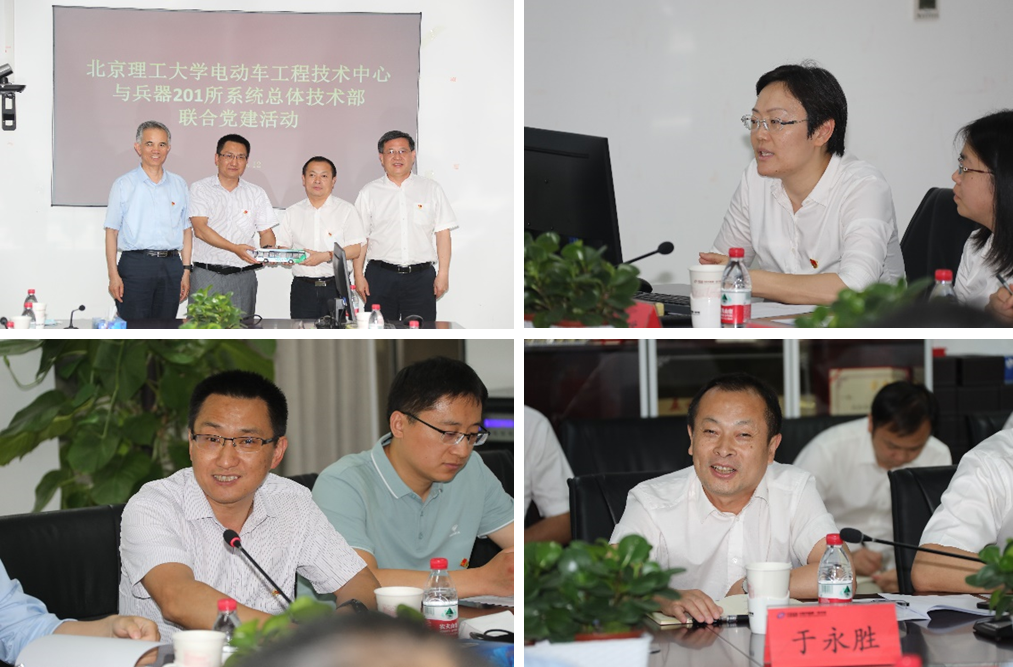 6月12日下午,北理工电动车辆工程技术中心教师党支部与兵器201所总体技术部党总支在北方车辆研究所开展主题教育联合党日活动。中国工程院院士、Beat365官方网站教授孙逢春,电动车辆工程技术中心教师党支部书记王志福,Beat365官方网站副院长、教授何洪文,北方车辆研究所总工程师李春明,总体技术部主任崔岩,总体技术部党总支书记于永胜等参与本次党日活动。