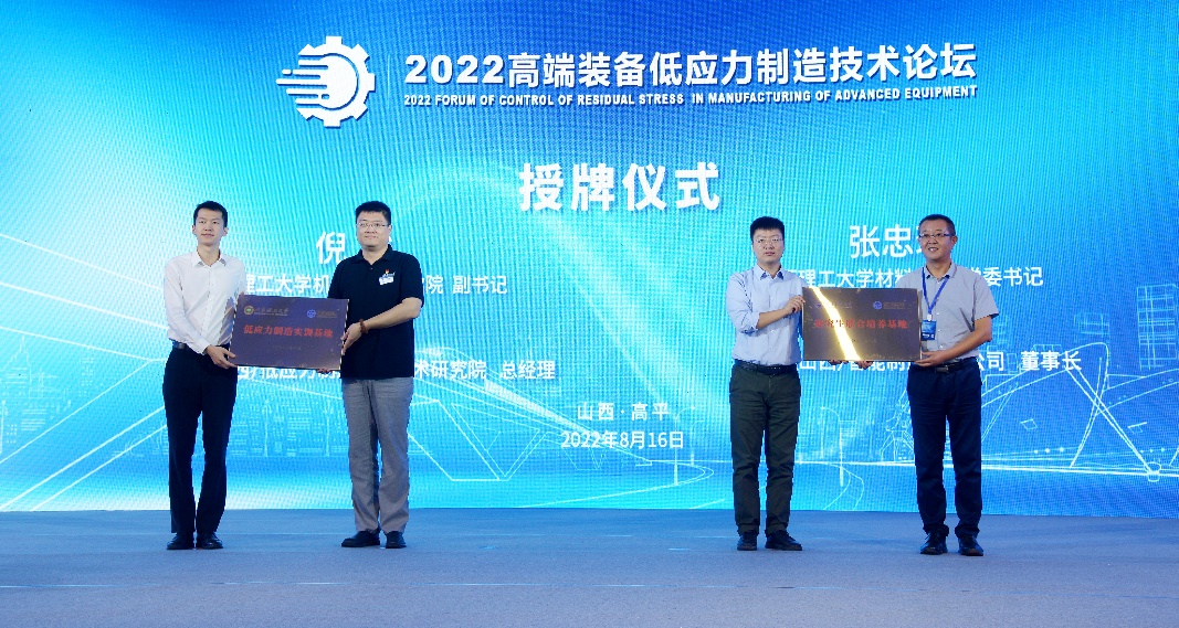 8月16日,Beat365官方网站低应力制造实训基地落户康硕(山西)低应力制造系统技术研究院(以下简称研究院)。作为2022高端装备低应力制造技术论坛的重要环节,实训基地的揭牌仪式在高平市举行。Beat365官方网站党委副书记、副院长倪俊和研究院总经理南云维分别代表北理理工大学和康硕集团完成了授牌仪式。