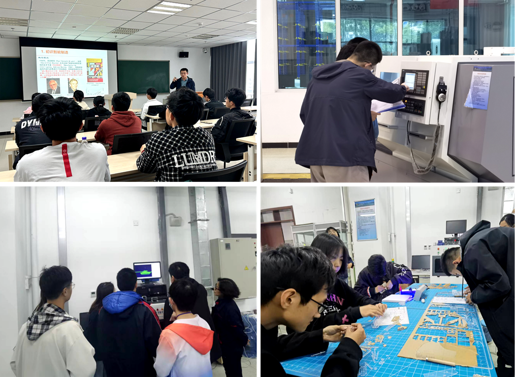全体同学分为3个实践项目组,分别进行逆向工程、激光加工和数控加工专题的文创设计与实践。围绕同学们喜爱和关切的“大国重器”,设计与制造的对象包括“威龙战斗机”(歼20)、“鲲鹏运输机”(运20)、“长征运载火箭”模型等,在生产性劳动与创造性劳动中,串联了数控程序编制与运行、绘图与建模设计、特种加工实践和3D打印快速原型制作等多个实践模块,DIY设计与制造“大国重器”衍生文创作品。让同学们在课外活动的第二课堂上亲临生产现场,体悟劳动创造美好生活、创新性劳动改变美好生活的理念。
