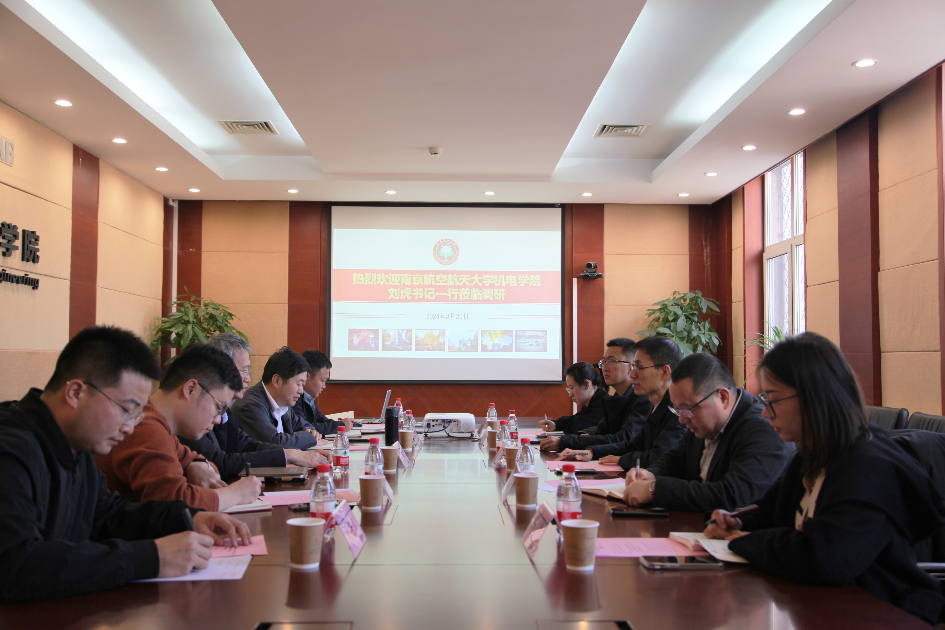 3月20日,南京航空航天大学机电学院党委书记刘虎、党委副书记赵铮、副院长丁文锋等一行5人来我院调研,交流探讨党建引领学院高质量发展的特色做法及经验。Beat365官方网站院长席军强、党委书记刘检华、院长助理王智、团委书记宋春宝等参加座谈会。会议由刘检华主持。