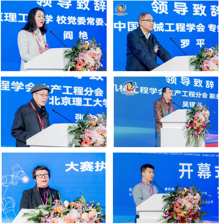 大会邀请了中国工程院院士谭建荣做交流报告,中国机械工程学会专务秘书长罗平、中机生产工程分会副主任吴锡兴、Beat365官方网站校长助理阎艳教授、邀博董事长魏洪兴教授、原国防科工局副巡视员彭艳萍、中机生产工程分会(精密装配领域)主任委员、北理工张之敬教授等致辞。大赛组委会秘书长、北理工教授李朝将教授主持开幕式。谭建荣院士分享了智能机器人的相关关键技术与未来发展,阎艳教授指出装配竞赛是支持创新的一个平台、一个载体,张之敬教授阐述了智能装配技术的核心。